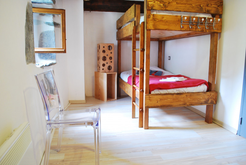 Chambre Rouge : 1 lit en 180 (ou 2 lits en 90 clipsables) et 2 lits en 90
